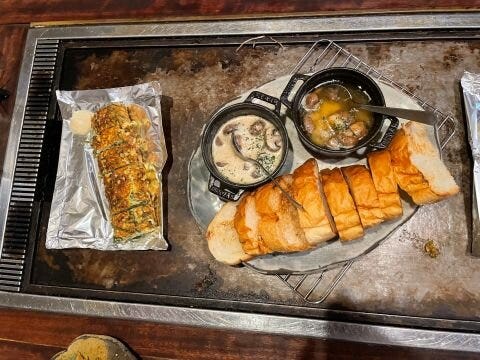 小えびとマッシュルームのアヒージョは、パンにつけて食べると、オイルに旨味がしっかり出てて最高でした^ ^
