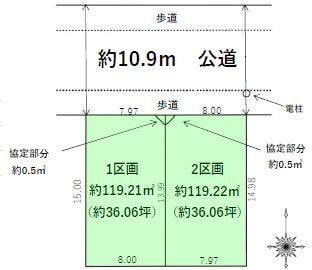 | 土地面積 | 119.21㎡(36.06坪) | 接道 | 北側(公道)幅 約10.9m |